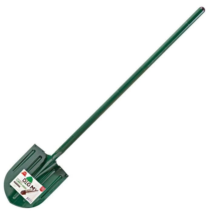 Dig My Shovel makes the lightest garden shovels on the market. This round-point shovel features a unique aluminum alloy construction. The shovel blade measures 12 inches long and 9 inches wide and has a turned foot step. They finish this tool by welding a 40-inch long, 1-1/4-inch diameter handle directly to the blade. This shovel is green in color. Click for square-point options.